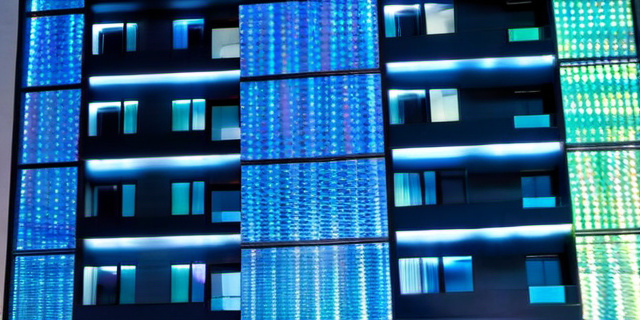 Голографические фасады меняют оттенок и интенсивность цветов при изменении позиции наблюдателя, что обеспечивает динамический внешний вид здания, способный вызывать визуальный интерес и эмоциональный отклик.